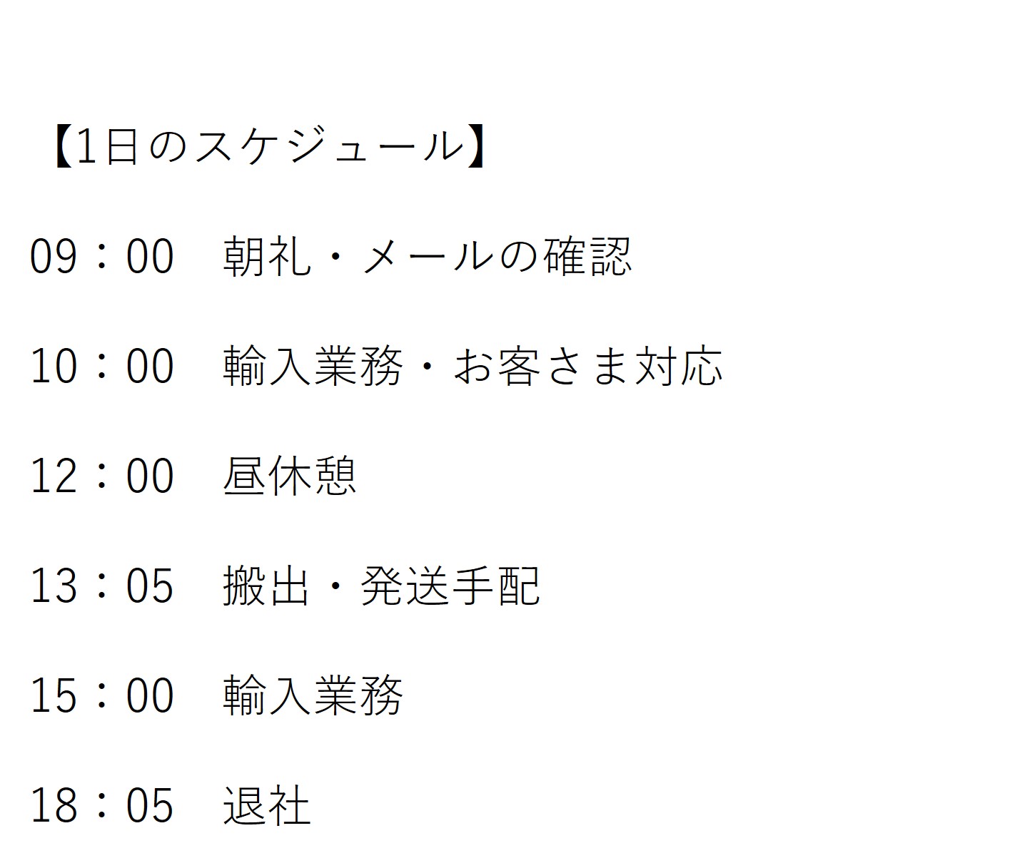 主に海外から来た商品の輸入手続きとお客さま対応です。