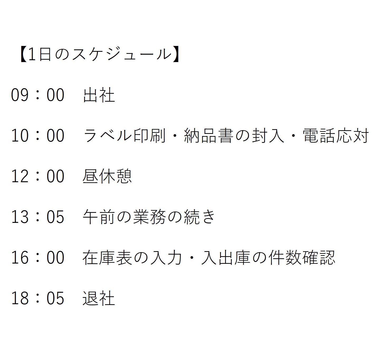 現在は出荷ラベルの印刷や納品書の封入、在庫管理、お客さま対応を行っています。