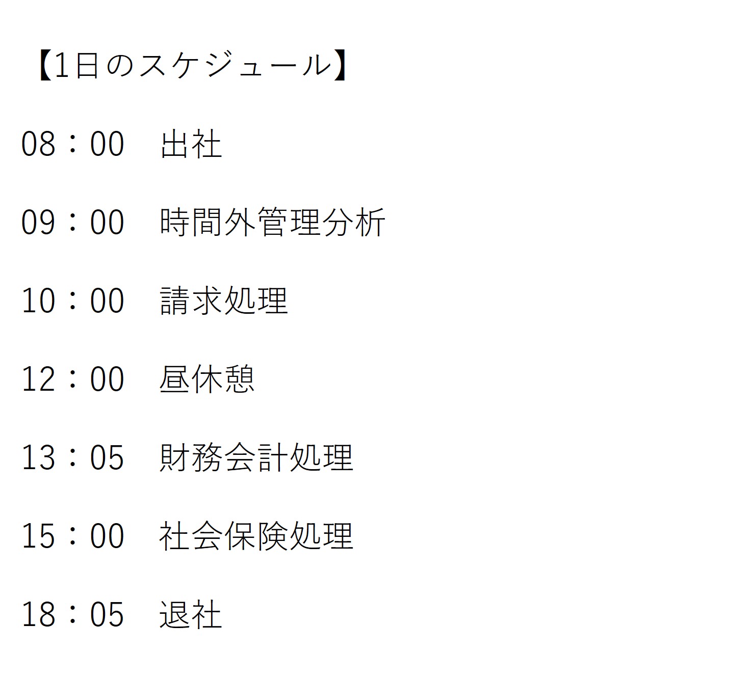 主な仕事内容は大きく3つあります。担当地区の労務管理、経理業務、時間外管理です。